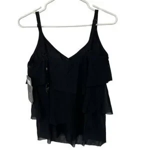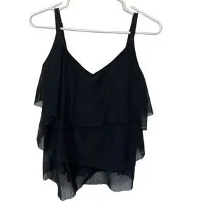 NWT Coco Reef | Black Flourish Bra Sized Tier Mesh Underwire Tankini Top 32C