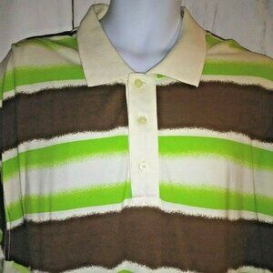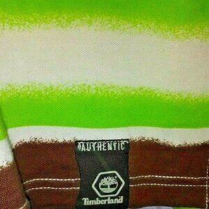 Authentic Timberland Men's Polo Shirt Size L/G Short Sleeves Green & Brown Stripes Big & Tall
