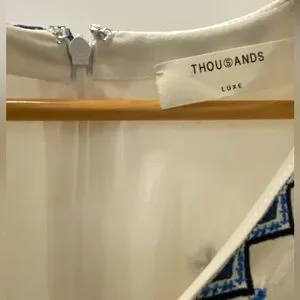 100% SILK Luxe Ivory and Blue Patterned Long Sleeve Dress