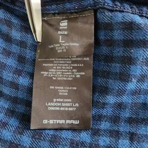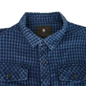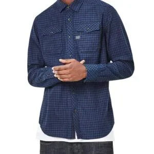 Keywords: “G-Star Raw plaid shirt, blue check cotton, men long sleeve button up, streetwear casual, contemporary designer brand”