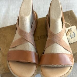 Born Women’s Atiana Strappy Slingback Comfort Flat Sandal Tan Leather Size 11
