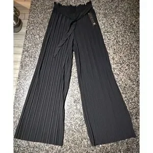 New Mix Black Pleated Wide Leg Pants High Waist Elastic Tie Belt Size 2 NWT