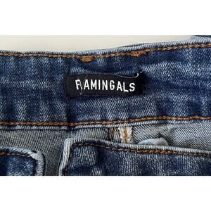 Flamingals Womens L 30 US 10 Straight Leg Jeans Mid Blue Wash Button Fly Ankle