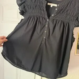 XIRENA black cotton ruffle sleeveless popover boxy cropped ruched blouse top