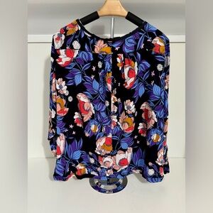 Free People Keepin’ On Tee Tropical Floral Print Women's Ling Sleeve Blouse Med.