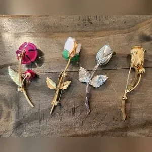Assorted Vintage Rose Brooch Pin - Gold, White, Silver, Pink Floral Accents