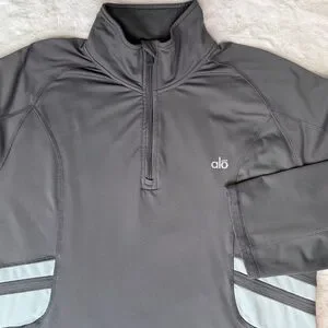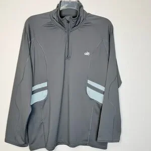 Alo 1/4 Zip CoolFit Pullover Mens XL Gray Stretch Athleisure Gorpcore Read