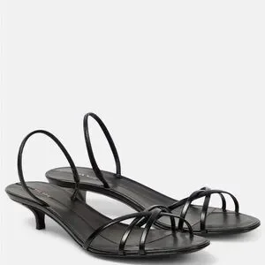 The Row Harlow Black Strappy Slingback Kitten Heel Sandals