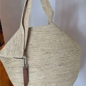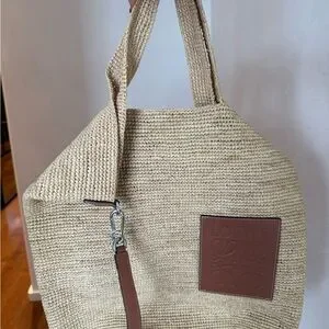 Loewe Beige Woven Tote with Brown Leather Logo Patch