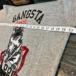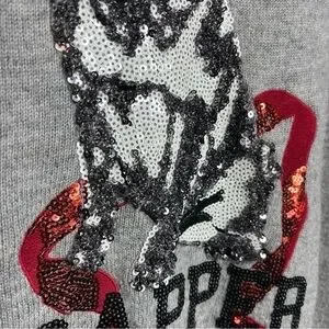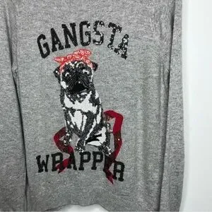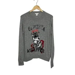 H&M Women's Medium Angora Blend Pug Dog Gangsta Wrapper Pullover Sweater Grey