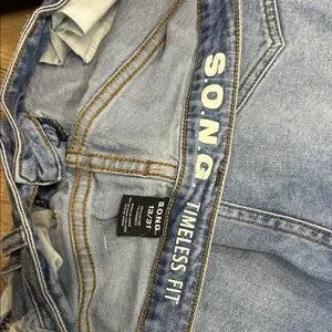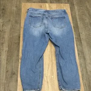 Classic distressed light blue jeans for men. Features ripped detailing for a modern, casual look. Comfortable fit and durable denim construction. Easy to style for everyday wear.