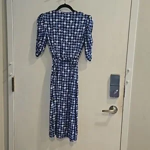 Eliza J Blue Polka Dot Faux Wrap Dress 0 like new