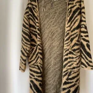 Elevate your style with this chic zebra print cardigan. Featuring an open front design, it's perfect for effortless layering.