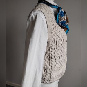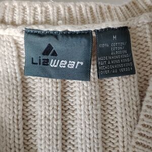 Liz Claiborne Cotton Aran Knit Sweater Vest Cream Classic Coastal Size Medium