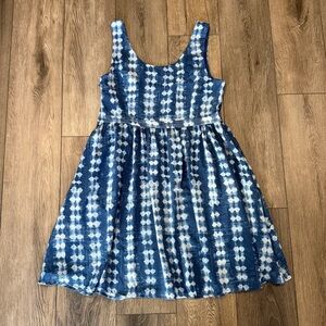 ModCloth Blue White Ikat Geometric Fit & Flare Dress Size S Retro Easter Boho