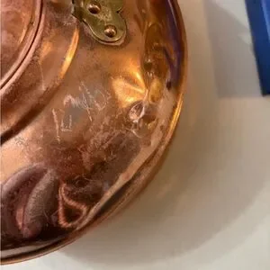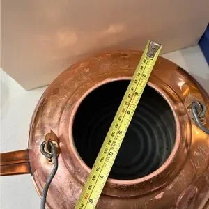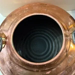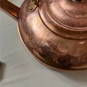 Enhance your kitchen with this elegant copper tea kettle, featuring a sturdy black handle for easy pouring.This is a pre-owned item and is being sold “AS IS ” If you have any questions concerning this item, feel free to contact us. This item comes from a loving home where we have no pets and no smoke, so you can expect it to be in great condition with no unusual odors. Please take a moment to check out the pictures before making your purchase, as we do have a no return policy. Thank you!