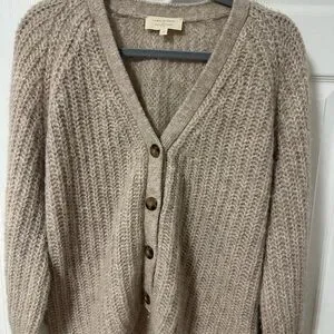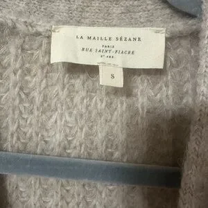 Sezane Basile Neutral Taupe Button-Front Knit Cardigan