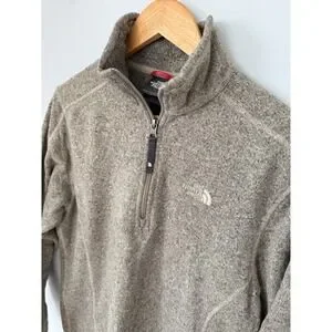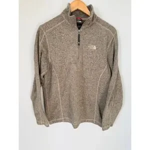 The North Face Gordon Lyons Quarter Zip Fleece Sweater Mens Small Brown Heather