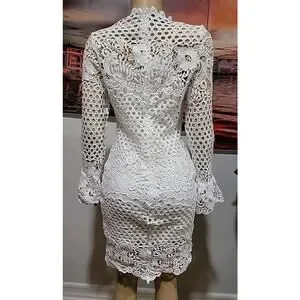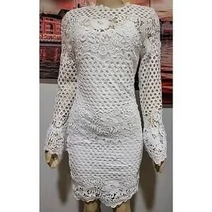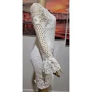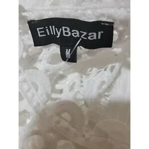 EILLY BAZAR White Guipure Lace Size M Women's Dress Flounce Sleeve NEW #C