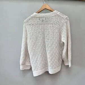 Jones New York Womens Ivory Knitted Lace Mohair and Wool Cardigan Sweater M