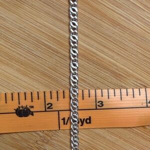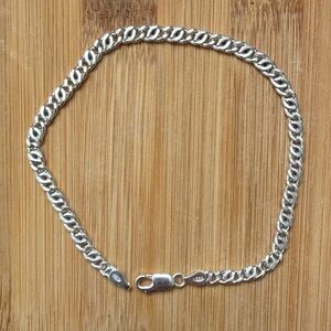 Elegant silver chain bracelet with a secure clasp. Marked 925 Italy. 9” long. Perfect for a larger wrist or to be worn as an ankle bracelet. Brand new without a tag, will come in a jewelry bag and box.