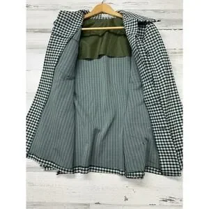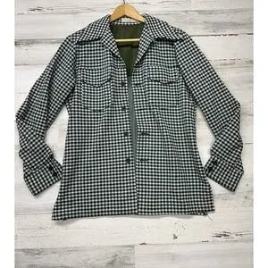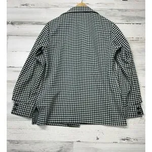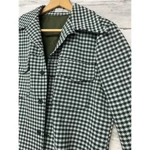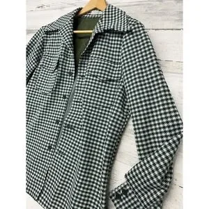 Vintage Women's Medium Sweater Jacket Shacket Green White Houndstooth Button Up