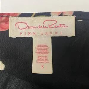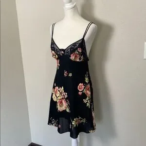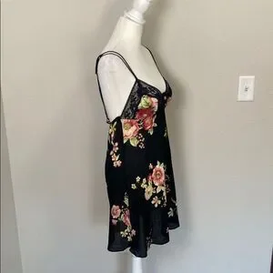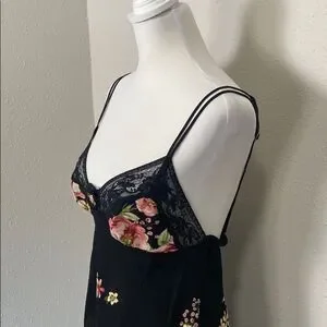 Oscar de la Renta Pink Label Floral Slip Dress Black Lace Trim Strappy Babydoll S