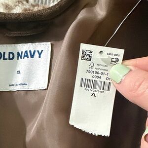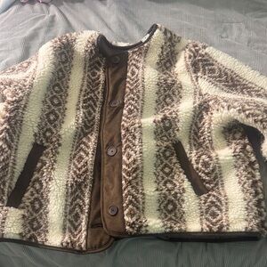 Old Navy Button-Front Brown and Cream Sherpa Jacket