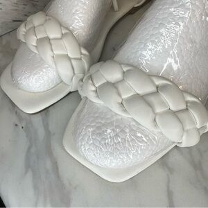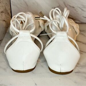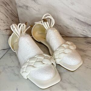 Wrap Up Square Toe Flat Sandals – Braided Toe Strap, Square Toe – White – Size 8