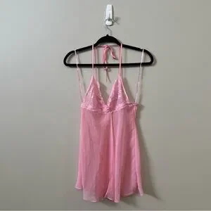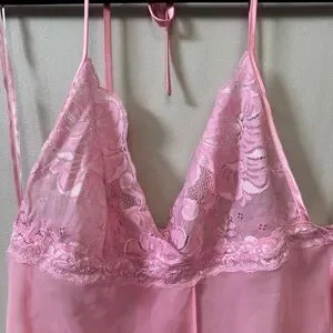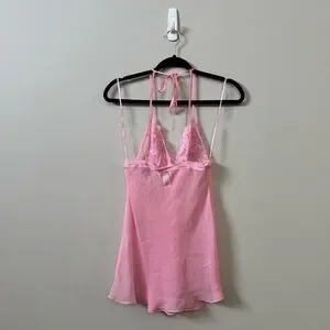 Excellent pre owned condition La Senza Y2K pink sexy lace and mesh babydoll lingerie cami tank top, gently used shape. Halter neck tie. (Side straps are just for the hanger!)