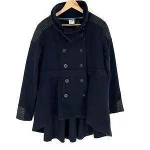 Navy Blue Pea Coat Double Breasted Hi Low Hem