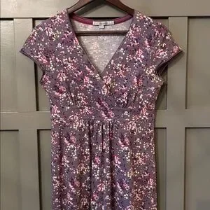 Boden Stretch Jersey Suplice Faux Wrap Dress Purple Floral V-Neck Size 6