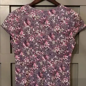 Boden Stretch Jersey Suplice Faux Wrap Dress Purple Floral V-Neck