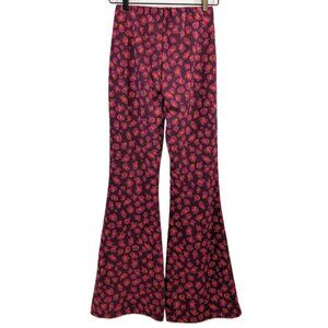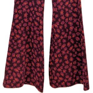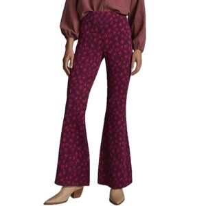 Anthropologie | Plum Knit Flare Pants with Abstract Floral Print | Size XS