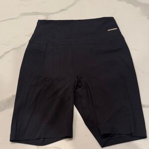 Sleek high-rise bike shorts with a supportive wide waistband. Smooth, stretchy fabric for unrestricted movement. Minimal Gymshark logo for a clean look. Versatile black color for workouts or casual wear.