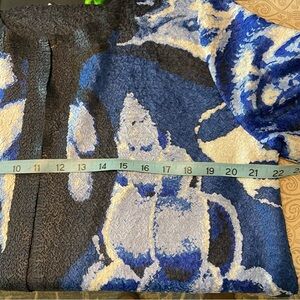 Excellent preowned condition, no issues. Abstract seashell print. Textured satin fabric, has stretch. Lightweight, not lined. One hook/eye closer at the neckline. Chico’s Size 2.