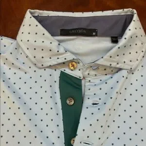 Greyson Polo with blue emblem and Green Accent perfect for summer and athletic