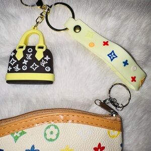 Multicolor Monogram Coin Pouch with Bag Charm or Keychain set- NEW