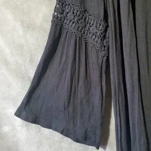 John Paul Richard Button Down Boho Bell Sleeve Overshirt w/Lace Black S