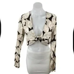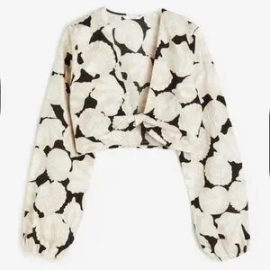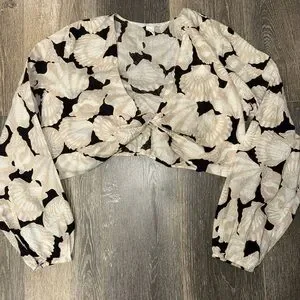 H&M Linen Black and Cream Sea Shell long sleeve Top