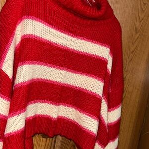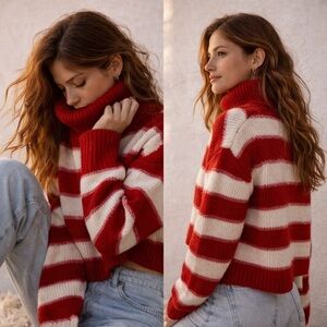Altar’d State Red Cream Striped Cropped Sweater XL Cozy Cabin Turtleneck NWT