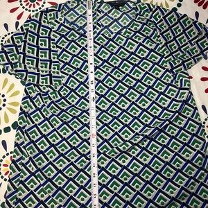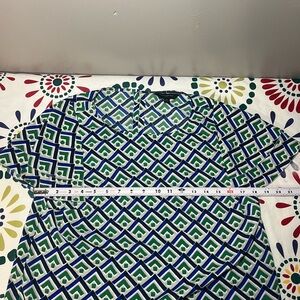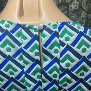 Banana Republic Women's Blue and Green Geometric Print Ruffle Sleeve Blouse