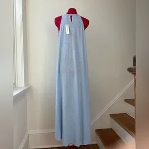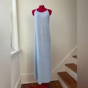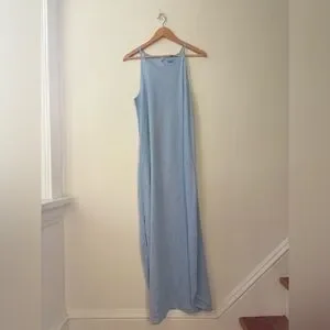 Sweet cotton/ linen/ poly maxi dress with side slits. Spaghetti straps. Single back button closure. Pullover. No pockets. Such a pretty colour. NWT