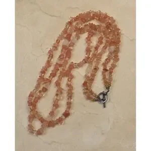 Vintage Rose Quartz Dual Strand 27" Sterling Silver Toggle Clasp Necklace