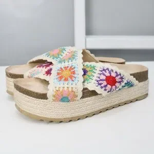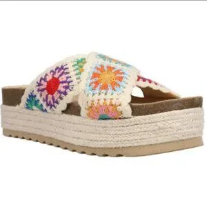 Dirty Laundry Plays Crochet Espadrille Flatform Sandals Multicolor Cream Size 8