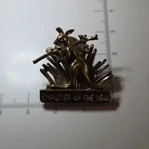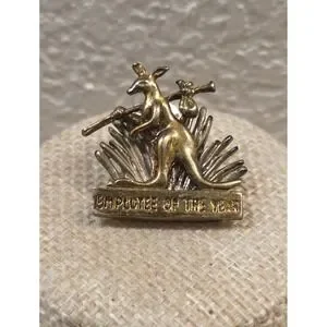 This rare and unique sterling silver kangaroo employee of the year pin brooch is a special and collectible piece of vintage jewelry. Crafted from high-quality silver, this brooch showcases a distinctive design featuring a kangaroo, making it a standout accessory for any outfit. Perfect for pinning on a lapel, collar, or even as a unique statement piece on a bag or accessory, this sterling silver brooch is a unique and special item that would make a great addition to any jewelry collection. Gold & Silver tone sterling silver. Engraved "shaggy" on back. Early outback steakhouse pin.
