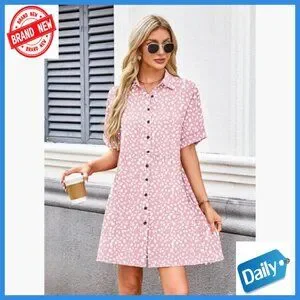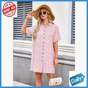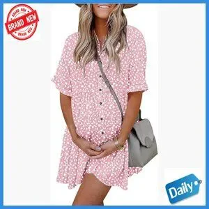 Summer Babydoll Dress Short Sleeve Button Down with Pockets Casual Sundress