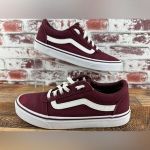 Vans Off The Wall Women’s Low Top Canvas Sneakers, US Size 9.5, Maroon and White