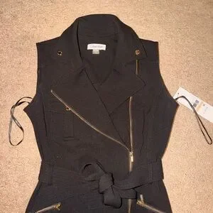 Calvin Klein Black Women's Moto Belted Sleeveless Sheath Dress