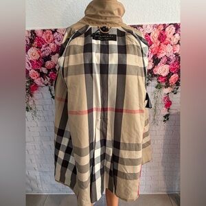 Made in Italy the cape features Burberry's iconic check lining, signature gold-tone buttons, and refined trench details including epaulettes and a structured collar. The shape drapes beautifully when worn and works perfectly for both casual and dressier occasions.